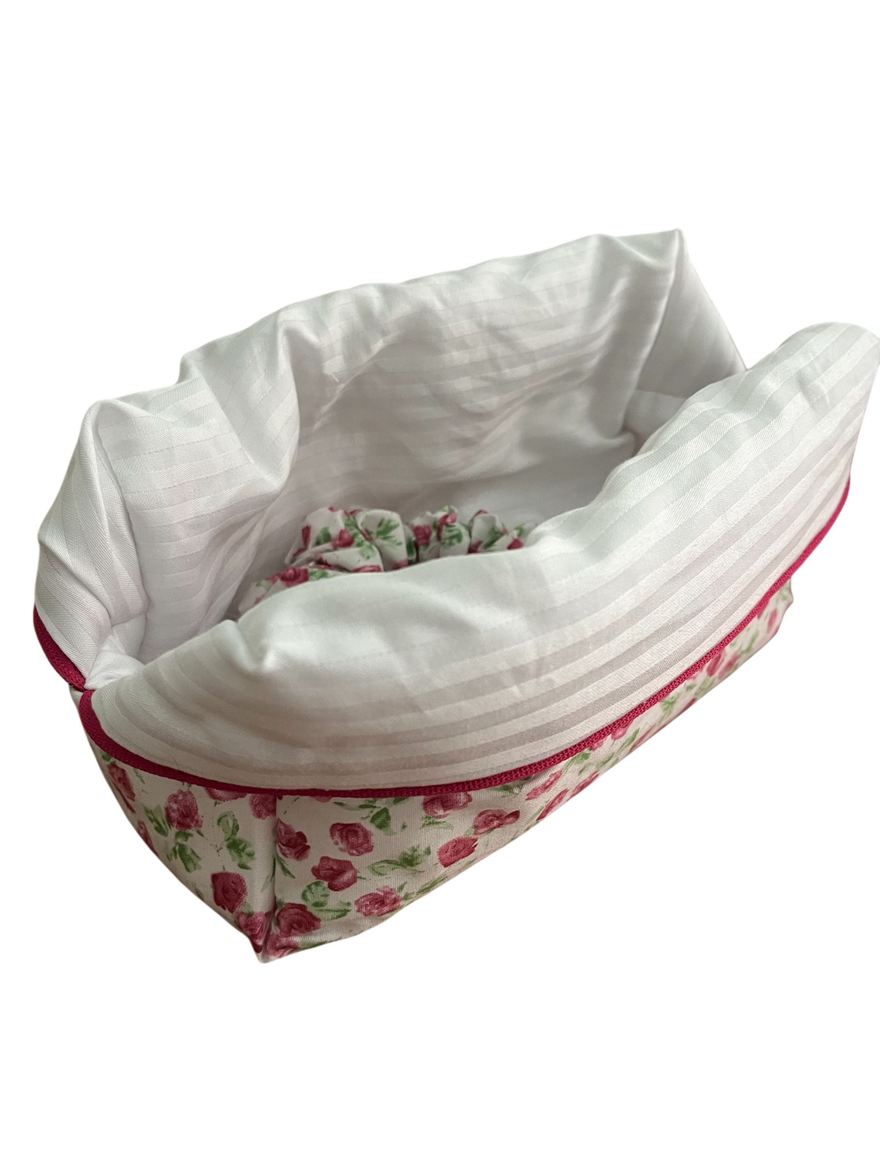 Jemný květinový vzor může být krásným doplňkem do jednoduché, ale i extravagantní tašky. Taštička na cesty, do batůžku, do kabelky.