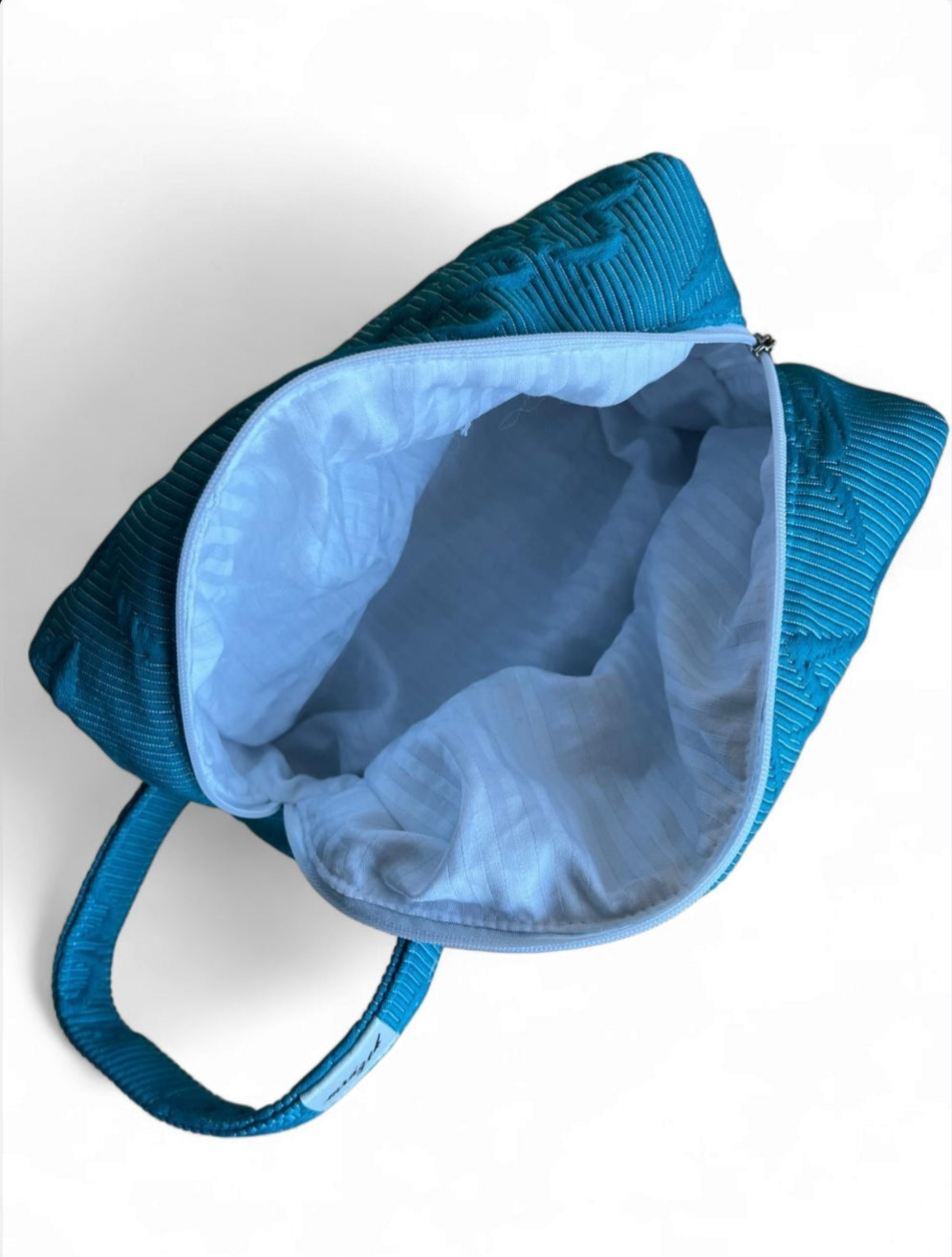 Jemnější proužkovaný vzor s květy a krásná modrá barva, oživí Vaši každou cestu.